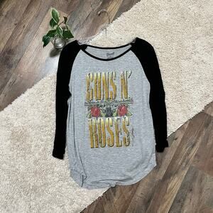 Bravado Women's Large Guns N' Roses Black Gray 3/4 Sleeve Raglan Graphic Tee
