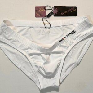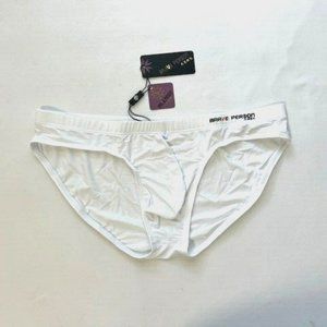 "Brave Person" Men's Swim Bikini Brief - White (BP9791-BK) Contoured Pouch