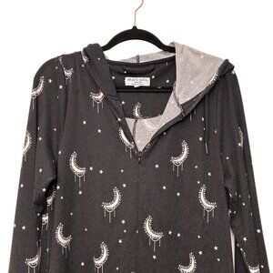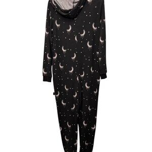 Get cozy in this Brave Soul black onesie, featuring a dreamy moon and star design. Made from soft, plush fabric with a relaxed fit, it's perfect for lounging and staying warm on chilly nights. Complete with a zip-up front and hood for extra comfort, this onesie is a must-have for ultimate relaxation! -053
