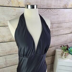 Brave Soul Women's Black Plunge Fitted Halter Swimsuit Size 16 NT