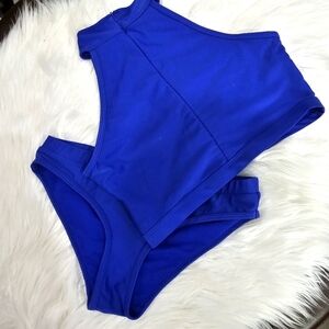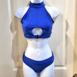 Brave Soul x Nasty Gal Bikini Set – Cobalt Blue Cut-Out High Neck Top, Racerback