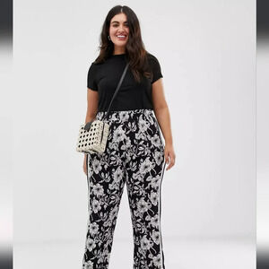Brave soul women's strip side floral wide leg trouser pants size 22 nav…
