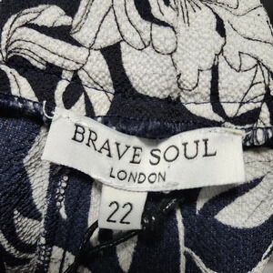 Brave soul women's strip side floral wide leg trouser pants size 22 navy white