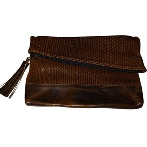 Brave 1992 Leather Envelope Clutch Fold OVER Style Leather TASSEL
