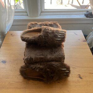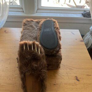 Rare Bravest Bear Claw Mules in brown, only worn twice, basically new, fur box included