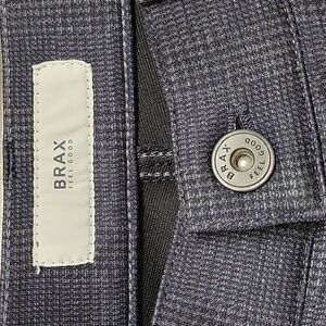 Brax Feel Good herringbone micro flex men's pants sz 31 x 32. 5 pocket. chuck modern. 50% cotton, 33% polyester, 15% viscose, 2% elastane. black and grey