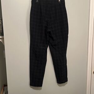 These trousers effortlessly blend fashion and ease, offering a chic plaid pattern that adds a touch of sophistication to any ensemble. The high-rise design provides a flattering silhouette, while the comfortable stretch fabric ensures all-day wearability without compromising style. The flat front design exudes a polished look, making these trousers versatile enough for both casual outings and more formal occasions.