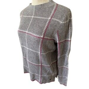 Brax Women's Sweater Pullover Lee 38 Gray Checkered Light Round Neck Wool Blend