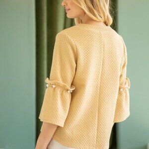 Take a bold step with our Pearl Detailed Bell Sleeve V Neck Textured Top! Elevate your style with its unique design and pearl detailing. The textured fabric adds dimension, while the bell sleeves and v-neck create a flattering silhouette. Take on any challenge in this top!