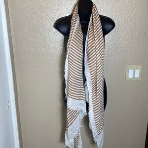Brazen 100% viscose lightweight soft scarf. White/brown striped. Tiny fringed ends.