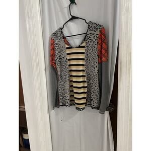 Brazil Roxx Multicolor Patchwork Long Sleeve Tee Metal Accents S/M Avant Garde