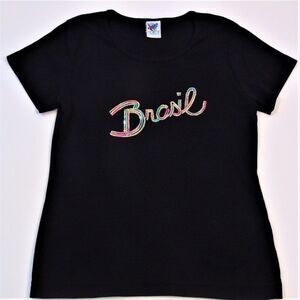 Brazil " Brasil " Sequined Spell Out Girls Tee Shirt .