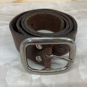 Brazilian 100% Leather Belt Medium 38" Crisscross Laced Solid Brass Buckle Brown