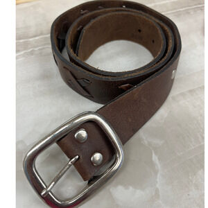 Brazilian 100% Leather Belt Size Medium 38" Crisscross Laced Design Solid Brass Buckle Brown