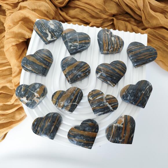Brazilian Blue Zebra Jasper Heart Crystal Carving