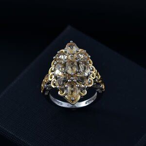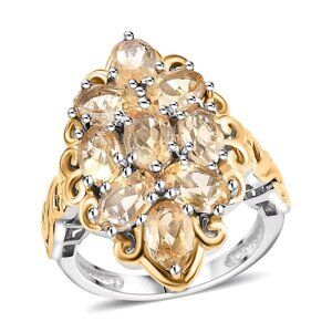Brazilian Citrine Gemstone Ring in 18K YG Plated and Platinum Brass Bond Sz 8
