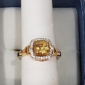 Brazilian Citrine Halo ring w/lab created White Sapphire accents in 14K YG/925