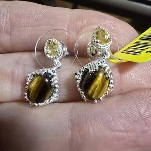 Brazilian Citrine & South African Tigers Eye Earrings 925 Sterling Silver NWTS
