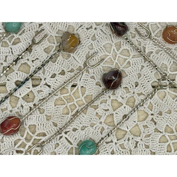 Brazilian Silver Twisted Semi-Precious Stone Appetizer Cocktail Forks 50s