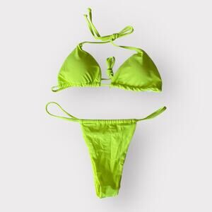Brazilian Two Piece Swimsuit Neon Yellow NWOT Size S