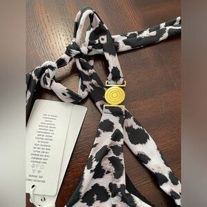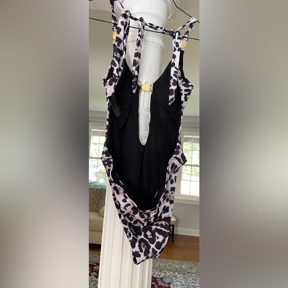 Brazilian women’s animal print metalic gold accents one piece swimsuit high tie