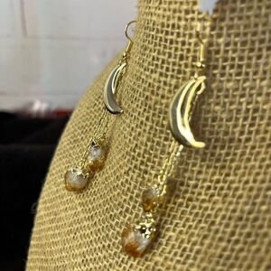 Experience the allure of the cosmos and the brilliance of gemstones with moon earrings in goldtone. Elevate your elegance and redefine your style journey with a piece that encapsulates the beauty of the night sky while enhancing your every look.
