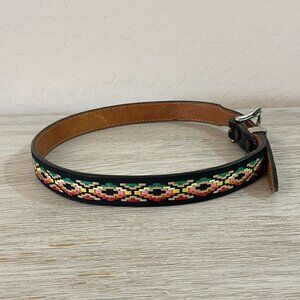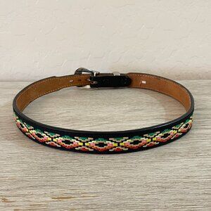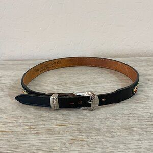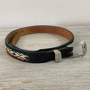 Brazos Joe Belt 28 Black Multi Color Stitched Western Aztec Tribal Silver Buckle