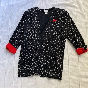 Breakin’ Loose 80s Black and Red Patterned Blazer. Size 9/10 - please see measurements. Totally retro blazer with unique pattern and cut. Does have shoulder pads, that can easily be removed. Features red accents on cuffs and pocket. Perfect for a bold look. So fun!
