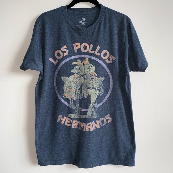 Breaking Bad "Los Pollos Hermanos" Distressed Men's Graphic Tee. Size Medium, dark blue-ish/gray color. One tiny small hole at the bottom (see 4th picture).