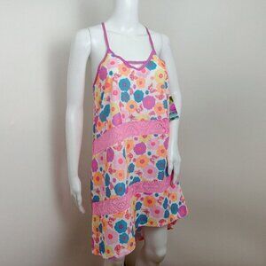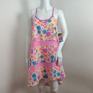 New with tags Breaking Waves Crochet Flyaway swimsuit coverup dress in women's size XS. Bright, multi-colored floral print. Strappy back. V-neck. High low hem. Relaxed fit.
