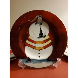 snowmen illustrations by artist Jennefer Garant produced ɓy Sakura (an Oneida company). Part of thr early 2000's collectible ", Breaking the Ice" winter series, these stoneware plates are both decorative and functional. Great during the Holiday Season.