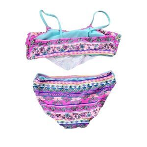 (V) Breaking Waves Pink & Green Bikini, Girls Size 16, No flaws