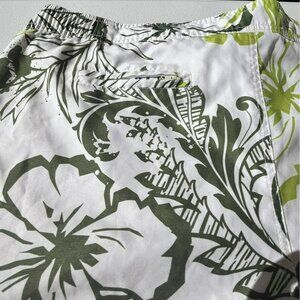 Breakwater Mens Size Large Hawaiian Swim Trunks Green White Floral Beach Board