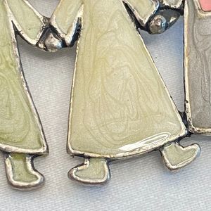 Breast Cancer Awareness Brooch Three Hand Holding Angels Donning Pink Scarves
