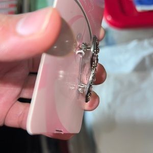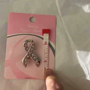 Breast cancer ribbon pin with pink rhinestones. Nickel free pin. 1.5 inches in length.