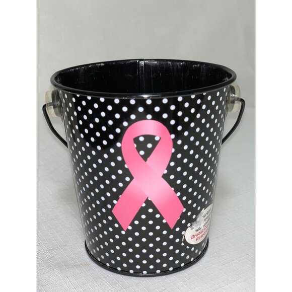 Breast Cancer Small Black & White Polka Dot Metal Pail With Pink Ribbon Design