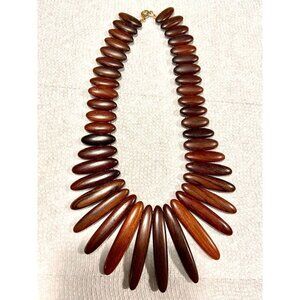 Breast Plate Necklace Graduated Wooden Beads & Stone Silver Tone Bracelet Chunky