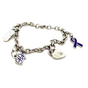 Not real silver Charms are removable Shows wear Measures 7.5” L Preowned