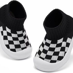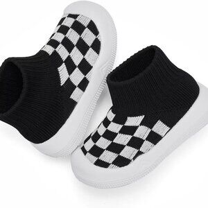 Features: Soft rubber soles with excellent grip and ankle support help prevent slips and falls, great for new walkers. Wide anti-collision toe box protects little toes from crawling injuries. Made with breathable high-tech nylon, these slip-on shoes keep tiny feet dry and odor-free. Easy to clean, comfy, and stretchy — just right for babies learning to take those first steps.