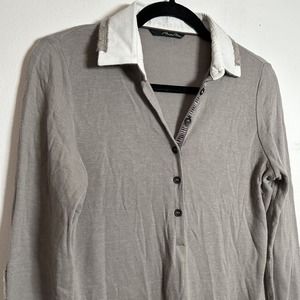 Brebis Noir Italy Collared Virgin Wool Long Sleeve Sweater Gray Womens Size 46 L