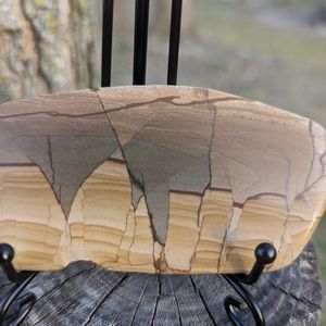 This is such an awesome Natural Brecciated Jasper slice with many layers and fragments. A true show piece to display with your collection or to purchase when starting your collection. The slice measures 4.2 X 1.8 X .18 inches. This stand is not included but I can provide a smaller plastic stand if you'd like one, just let me know.