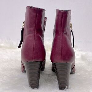 Breckelles | Burgundy open toe heel ankle booties 8.5 , side zipper closure in good used condition.