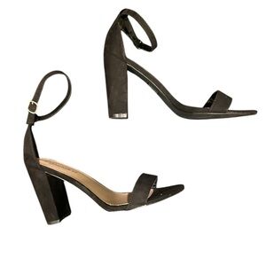 Breckelle's EUC black suede wrap sandals, size 10. They feature a 4" block heel style with an ankle strap for closure. The sandals are designed with an ankle strap for added style and support. Great for any outfit casual or formal.
