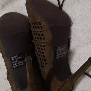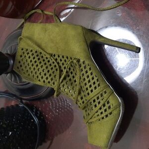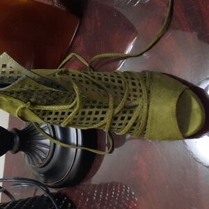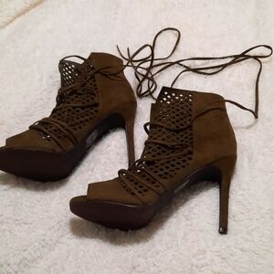Lace up Breckelle's shoes Moss green Peeptoe Faux suede Good condition