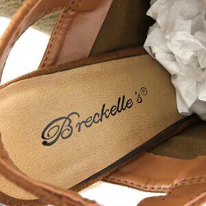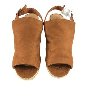 Breckelles Womens Sandals Wedge Faux Suede Open Toe Slingback Buckle Brown 8