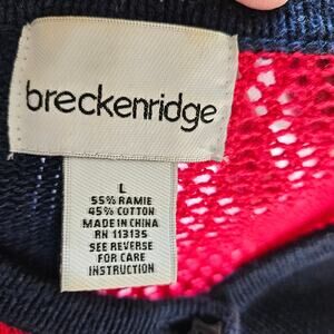 Breckenridge Americana Patriotic Red Blue Color Block Button Front Cardigan L