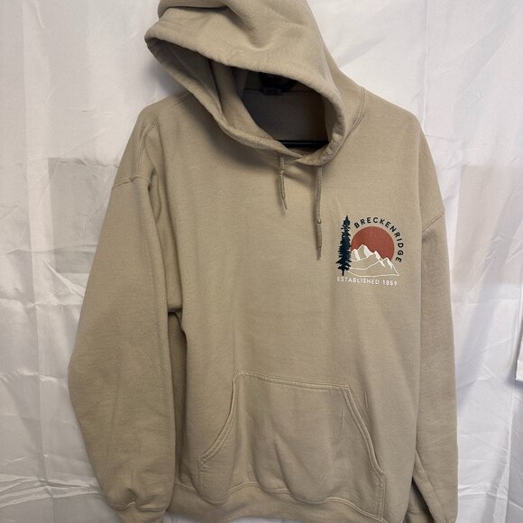 Breckenridge Colorado Hoodie, Cream Breckenridge graphic on front and back.