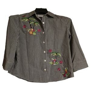 Breckenridge Petite Large Button Up Shirt Top Embroidered Palm Trees Pineapple