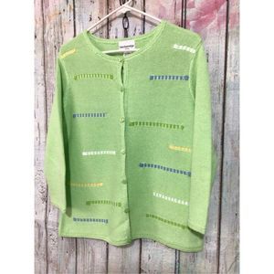 Breckenridge Petite Lime Multi Cardigan Sweater Size Petite Small ❄️💕