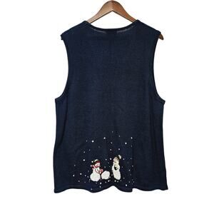 Breckenridge Snowman Sweater Vest Size 2X Zip Navy Christmas Winter Festive